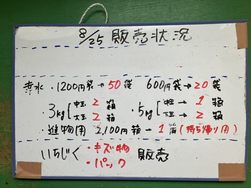 8月25日の販売状況