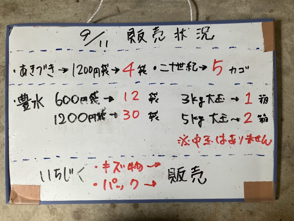 9月11日の販売状況