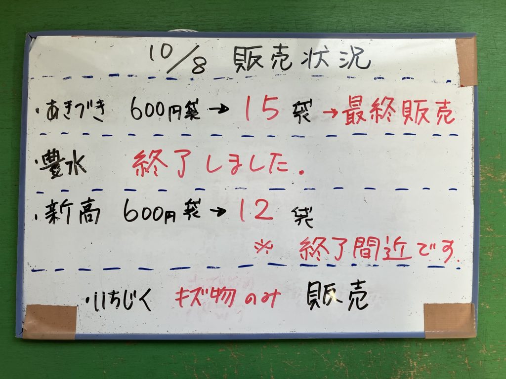 10月8日の販売状況